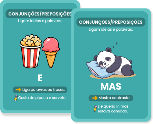 ✔ Preposições / Conjunções